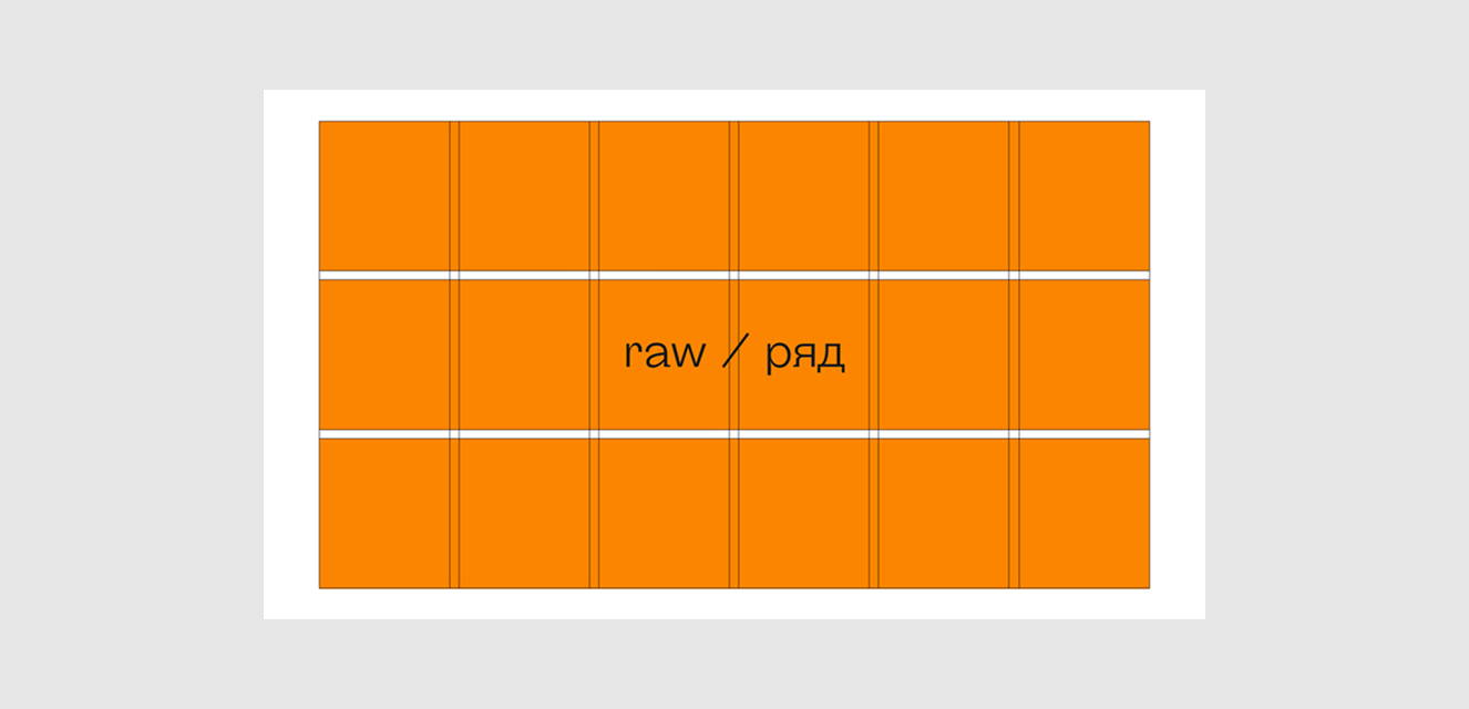 Raw / Ряд. Деление горизонталями. Часто используется с фиксированными по высоте форматами (приложения, журналы, книги и т.п.)