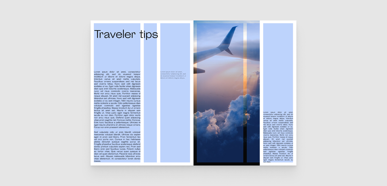 Если в композитной сетке нам понадобится средник, мы можем сделать его равным одной из колонок. Это даёт нам большое количество воздуха. Композиция становится воздушной, даже немного хипстерской.