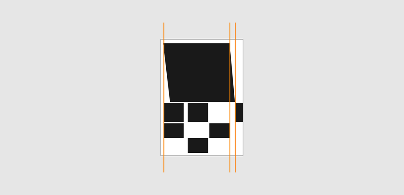 Создавая такую модульную конструкцию, мы повышаем нашу количество возможных вариантов. И тут такая же история, как и с колонной сеткой. Не надо думать, что это только стандартное расположение квадратов или прямоугольников со средником. Вспоминаем как работали с канонами, как создавали асимметричные границы, также мы можем делать и тут.
