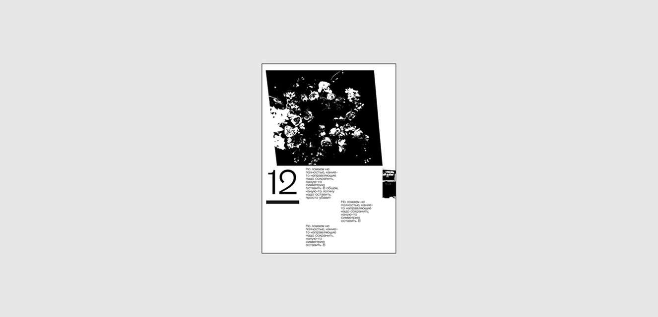 Такая композиция позволяет нам играть с масштабами, что в свою очередь помогает создавать и настроение, и контролировать процесс считывания страницы.