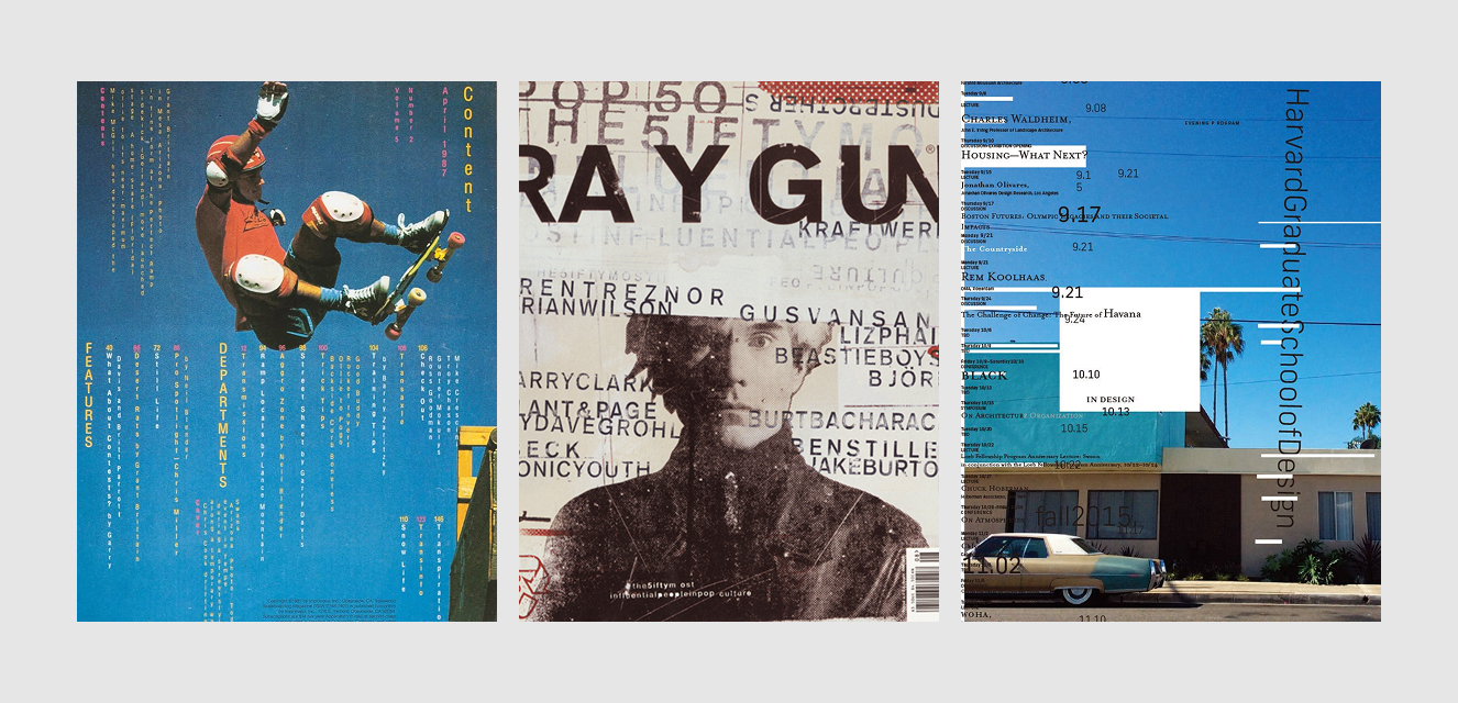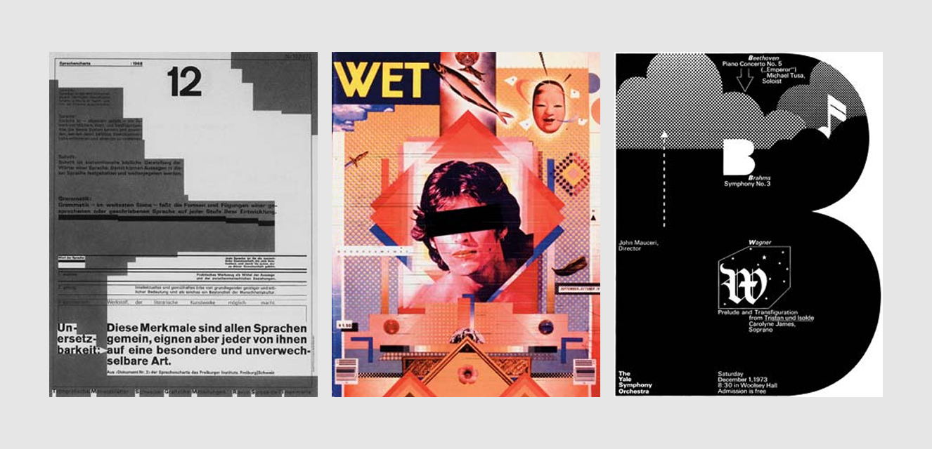 Примеры ломаных сеток — это работы, которые вы можете найти по запросам швейцарский панк, grunge design и anti-grid design. Известные дизайнеры, которые пользовались этим приёмом — Вольфганг Вайнгарт, Дэн Фридман, Эприл Грайман, Вилли Кунц, Дэвид Карсон.