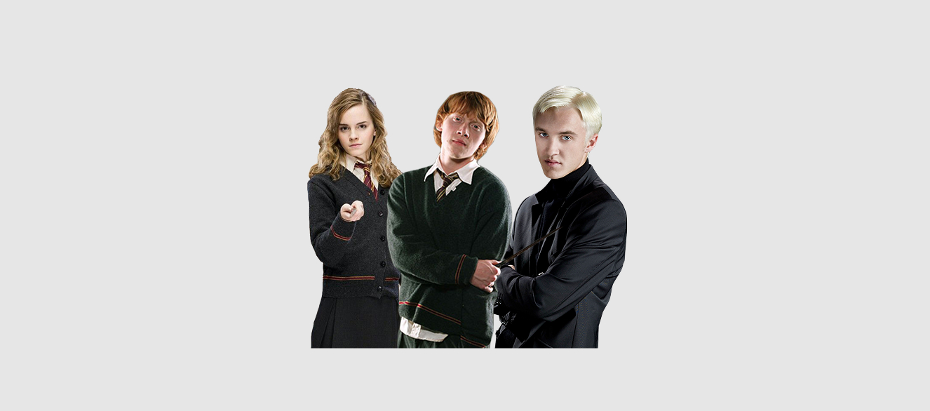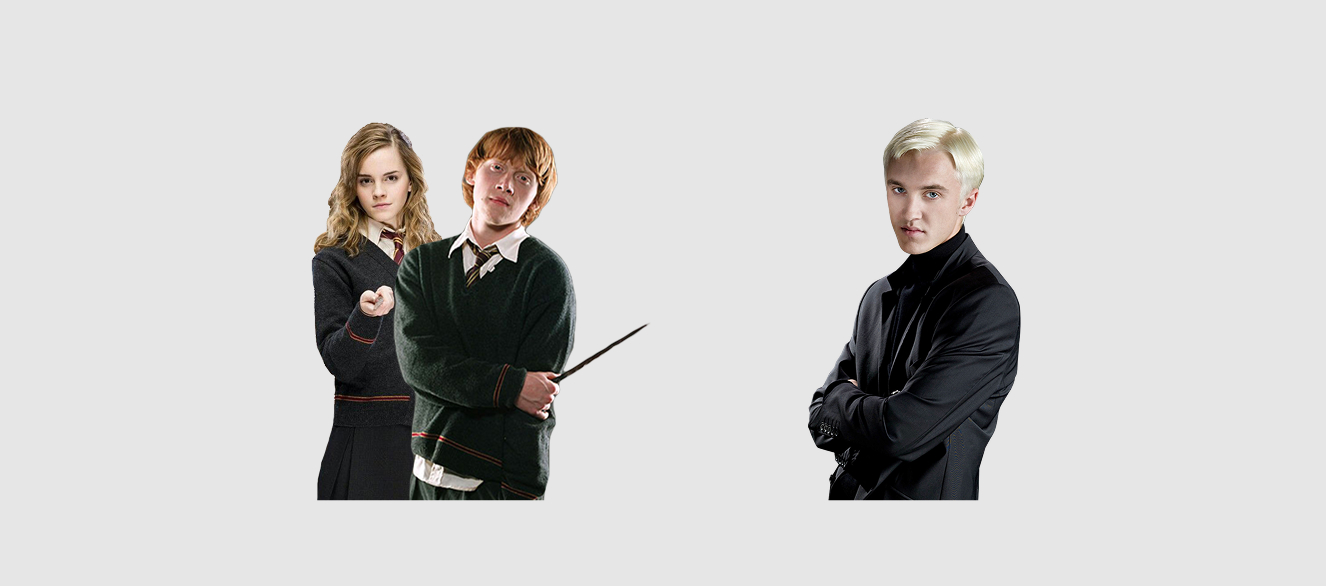Или вот три персонажа вселенной Гарри Поттера, стоит передвинуть Рона ближе к Гермионе, как мы видим уже некоторую историю, противостояние.