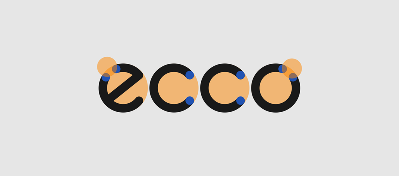 Перед вами логотип ecco. Внутри которого три графические рифмы. Первая — все буквы подчинены форме круга. Вторая — первая и последняя буква имеют разрыв. Третья — все линии закруглнены.