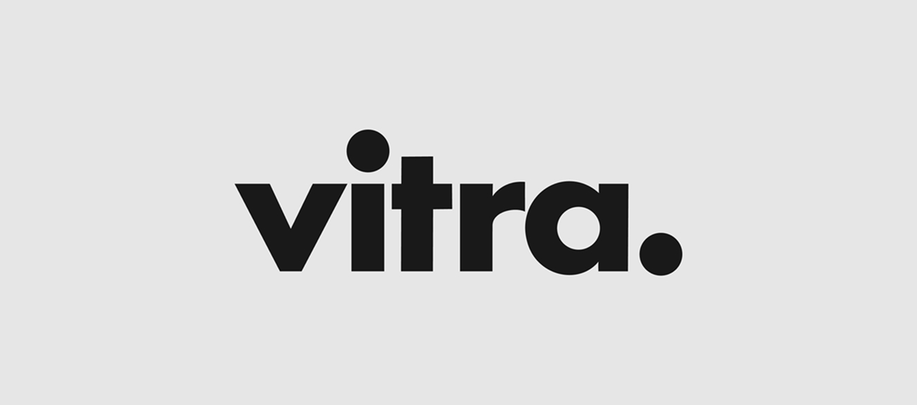 Логотип vitra. Вроде бы просто набран в иллюстраторе и всё, но если набрать шрифт вручную, то точка на I, точка в конце логотипа и круг внутри А совершенно разные. Какая маленькая рифма, но как хорошо она работает.